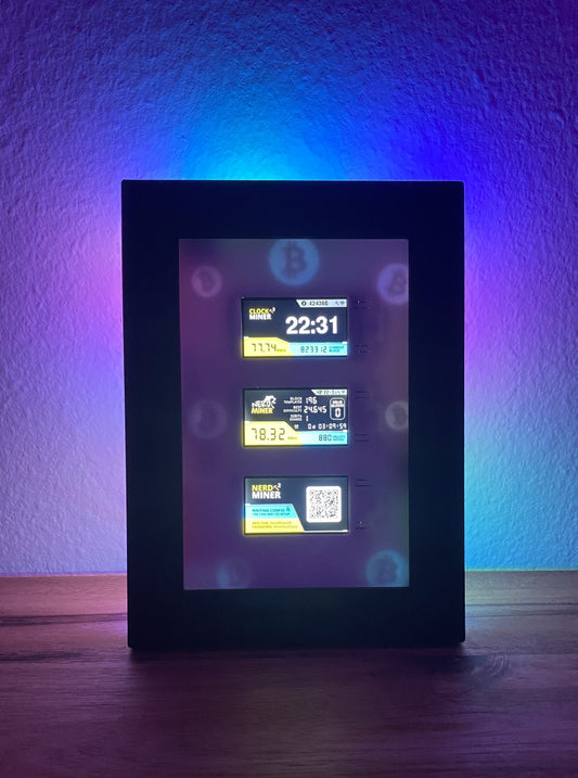 The NerdMiner is available in different versions in our online shop. If you have individual requests and adjustments, such as your own logo or lettering on the NerdMiner, please feel free to contact us.