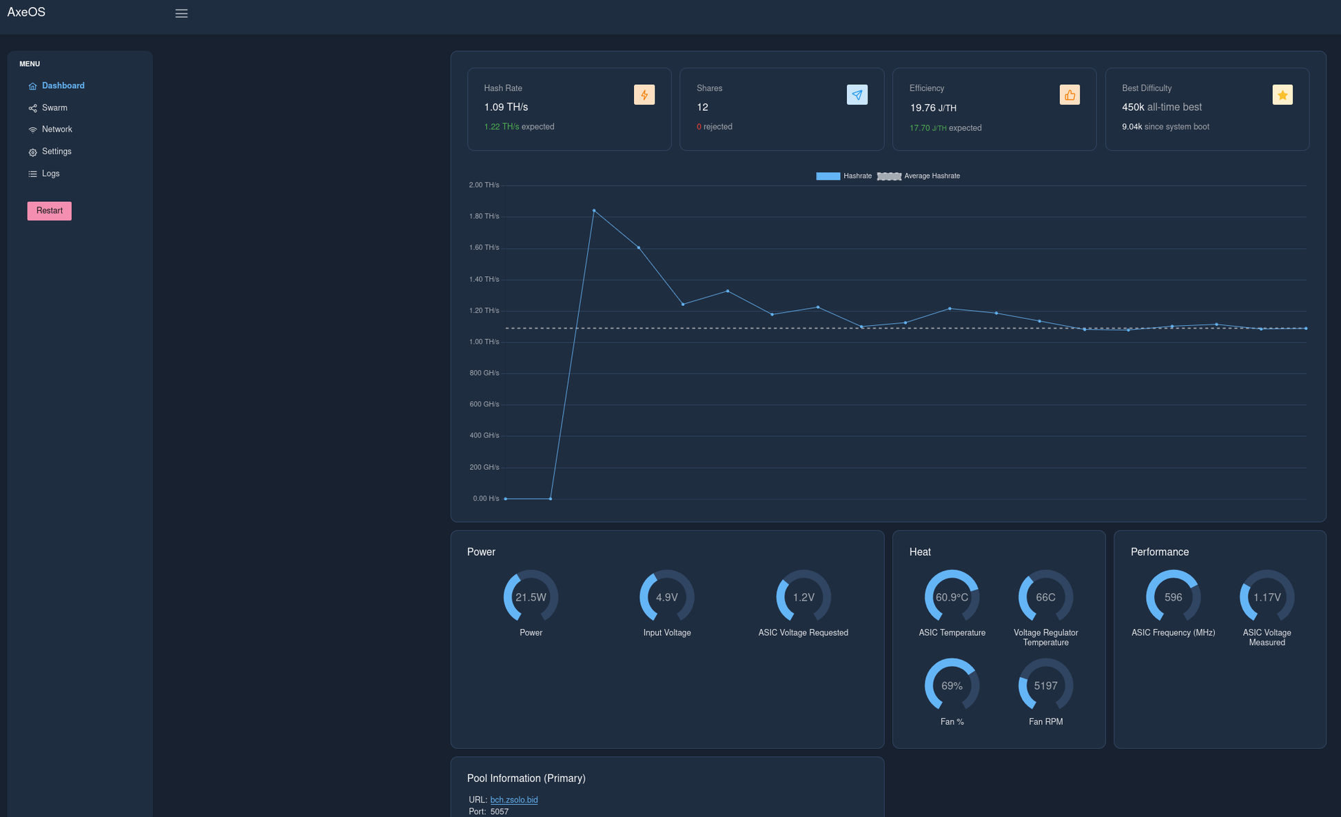 Der BitAxe hat mich begeistert. Er ist gestern bei mir angekommen. Die Einrichtung war sehr einfach. Einstecken , einige Einstellungen vornehmen und schon kann es mit dem Mining losgehen. Er ist extrem leise. Ich kann ihn nicht wahrnehmen. Auf dem Dashboard im Netzwerk kann ich alles verfolgen. Super. Ich würde ihn jederzeit wieder kaufen ! :-)