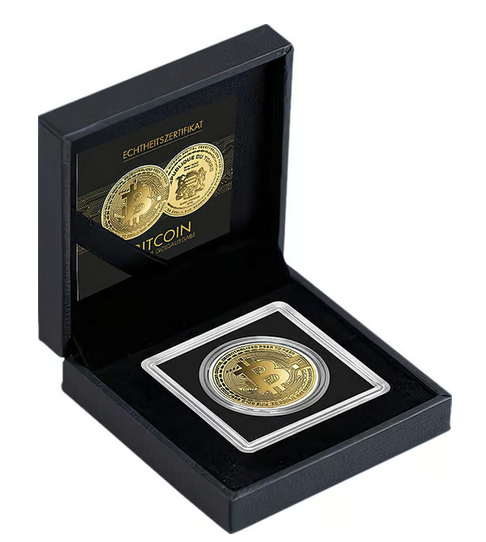 The Bitcoin gold coin is made of 999/1000 fine gold. This underlines its exclusivity and purity. Carefully hand-minted in Germany.