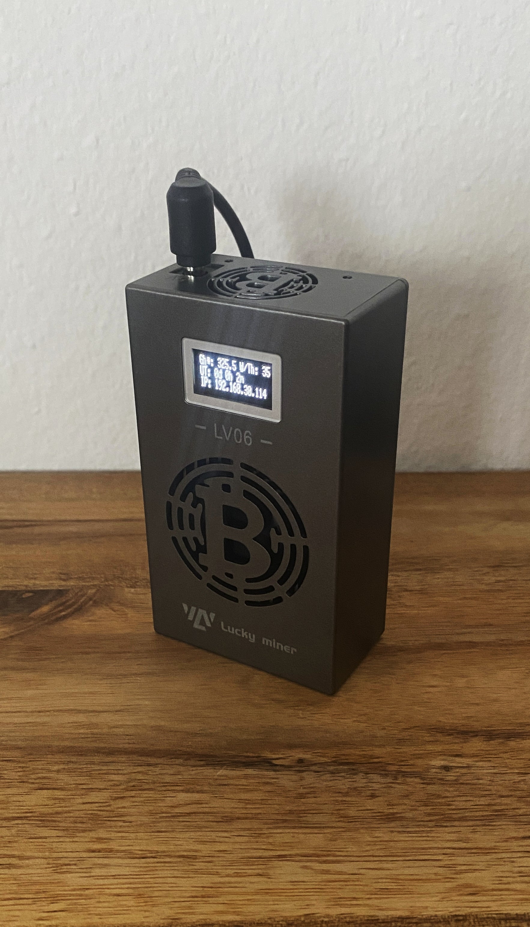 The Lucky Miner LV06 - Bitcoin Solo Miner with a computing speed of 500 Gh/s is perfect for beginners. With a highly efficient ASIC chip, which was specially developed for calculating SHA-256 coins such as Bitcoin, the Lucky Miner only consumes around 17 watts. This miner is not only efficient but also a real eye-catcher thanks to its metal housing.