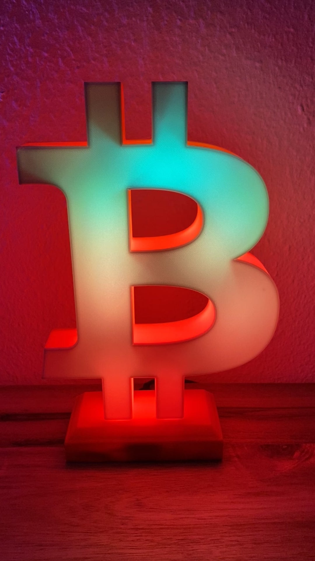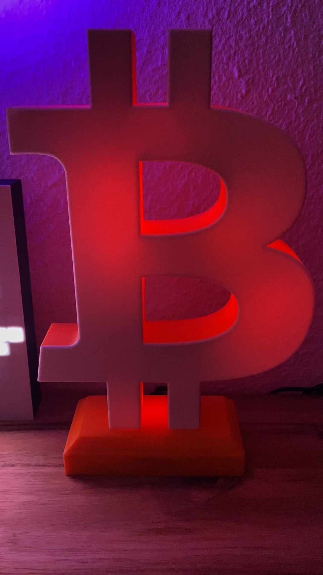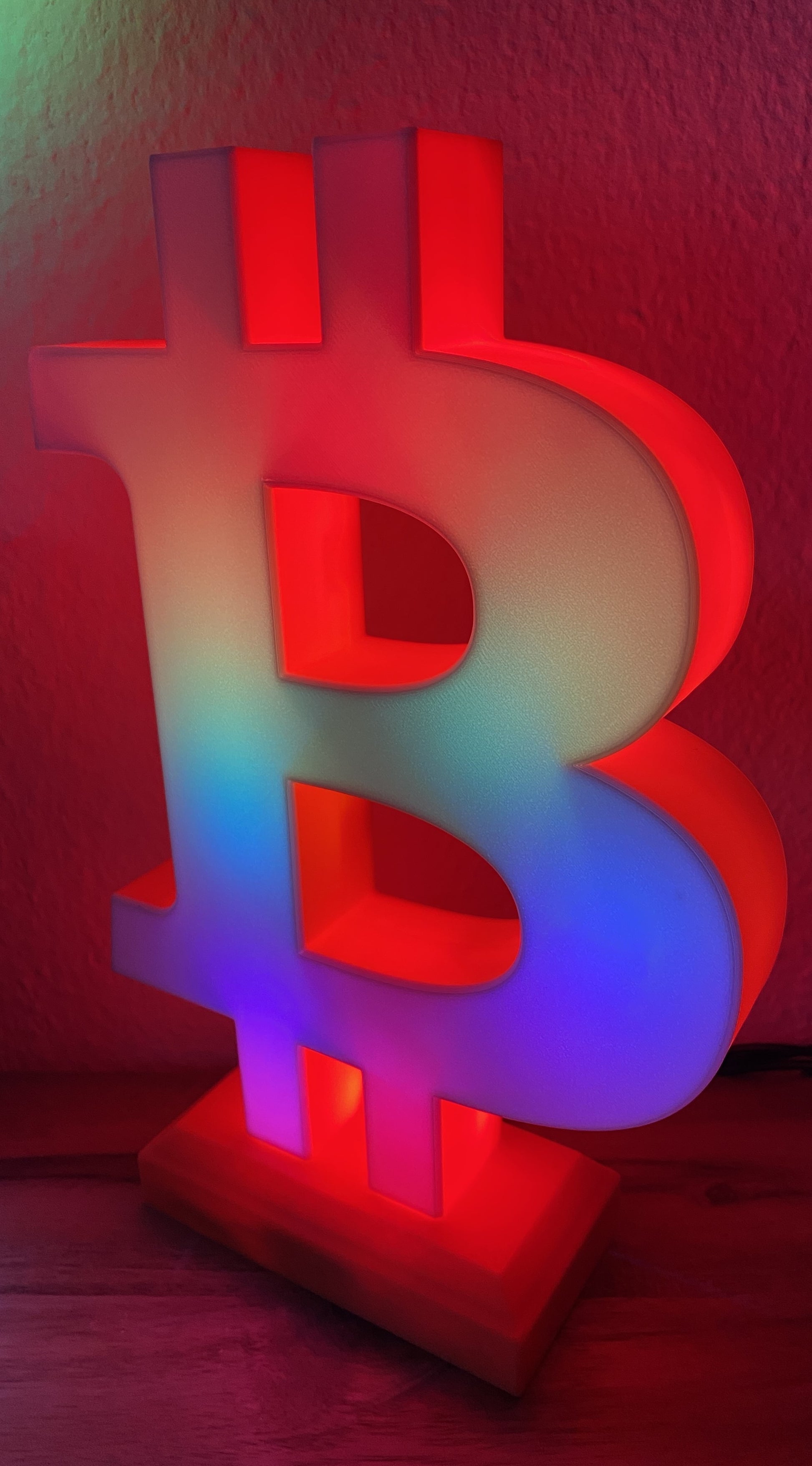 Dieser Bitcoin Aufsteller wird im 3D-Druckverfahren aus umweltfreundlichem PLA hergestellt und ist in verschiedenen Farben verfügbar. Der Stromanschluss erfolgt über USB Type-C und kann mit jedem handelsüblichen USB-Netzteil betrieben werden. Die Farben und Leuchteffekte der LEDs können über den Webbrowser bequem vom Smartphone oder PC / Laptop eingestellt werden. Dazu muss der ESP32-Mikrocontroller mit dem WLAN-Netzwerk verbunden werden.